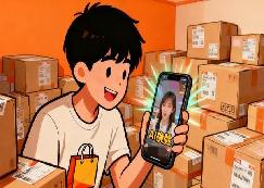 一名男青年在观看AI直播带货短视频。图片由人机协同生成